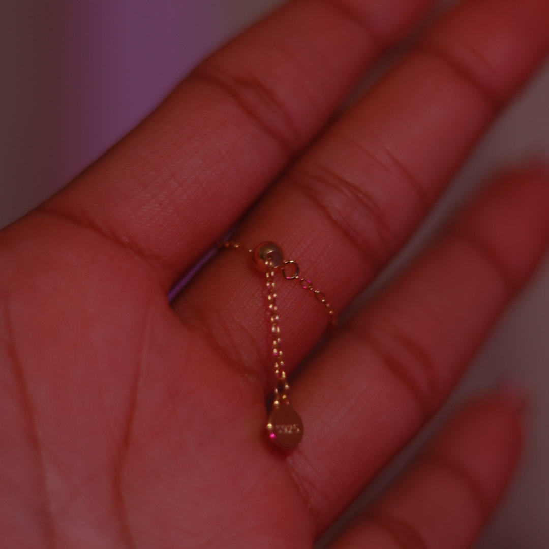 - Chaînette ajustable – s’adapte à toutes les tailles de doigts